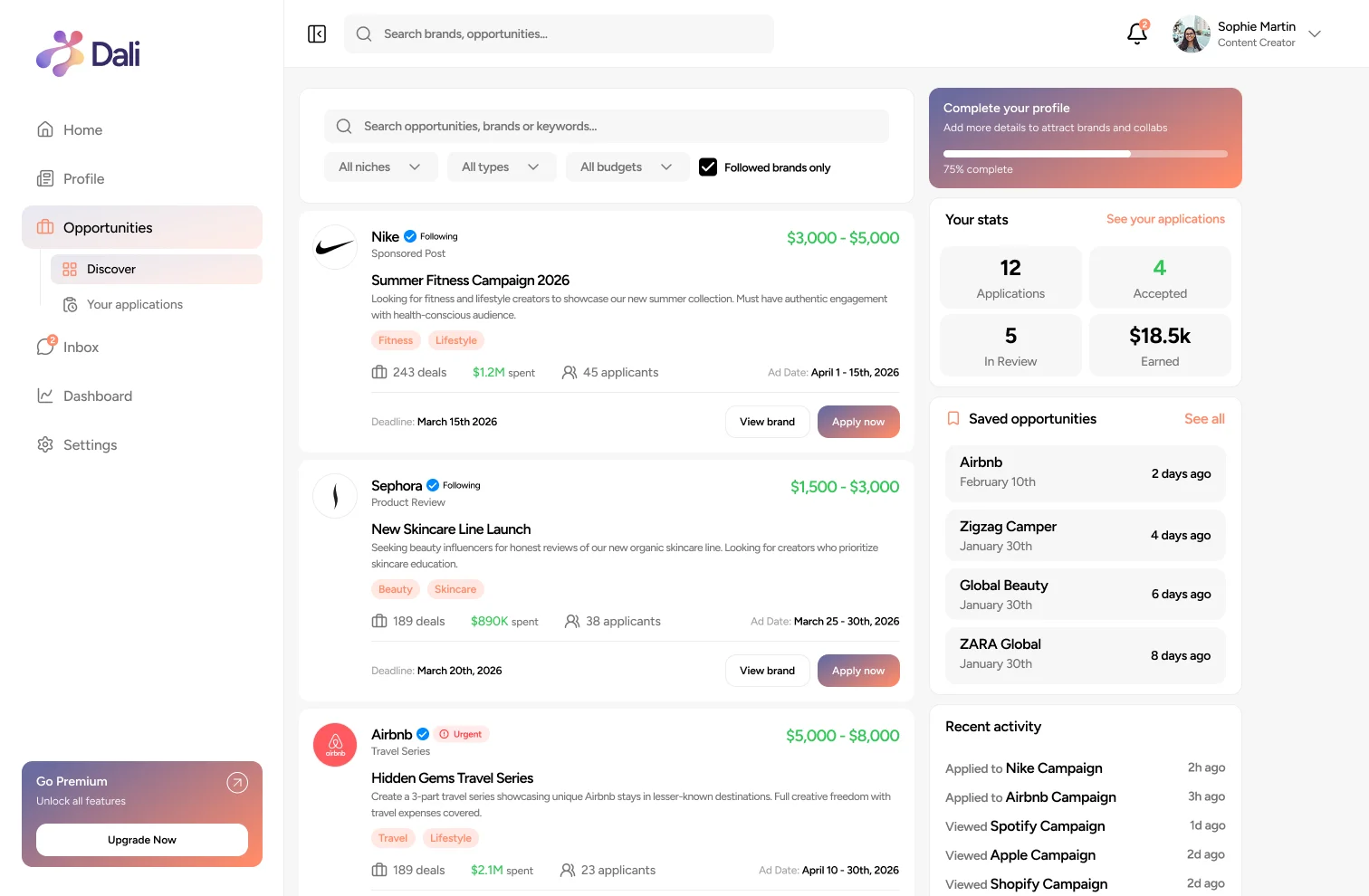 Discover brand campaigns and partnership opportunities across the ecosystem and match them with the right creators instantly.