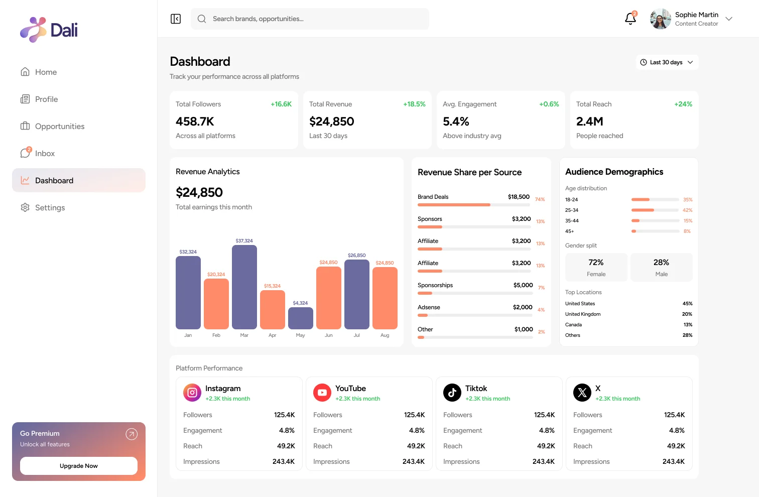 - One dashboard for campaigns, analytics, and partnerships